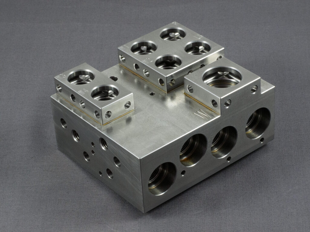 Gerade im Bereich der Bohrbearbeitung können wir als Lohnfertiger auf große Erfahrung setzen. Gerade bei der Fertigung von komplexen Ventilgehäusen sind wir in der Lage, auf normalen CNC Bearbeitungszentren wirtschaftlich Bohrungen bis zu 70 x D zu bohren.